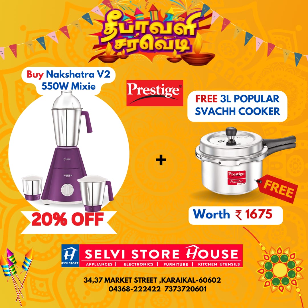 Nakshatara V2 550W Mixie + 3L Popular Svachh Cooker