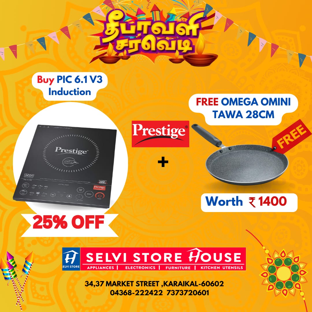 Prestige 6.1 V3 Induction Stove + Omega Omini Tawa 28cm